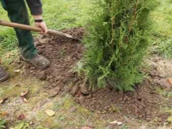 Большие деревья проштыковывать следует за год до пересадки. За это время внутри круга нарастут новые корешки и при извлечении растения почва не развалится. На новом месте при правильном уходе пересаженные туи приживаются быстро.