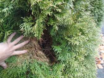 Если своевременно не заменить подобное, то поражение станет обширным, и дерево спасти в дальнейшем не получится. При небольших поражениях выполняют чистку веток водой, затем возле посадок устанавливают ограждения, ограничивающие доступ животных к туям, и выполняют подкормку стимулятором роста.