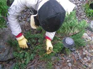 - Чтобы улучшить внешний вид дерева. Во время обрезки вечнозелёного деревца из кроны удаляют засохшие, больные и пораженные насекомыми ветки или их части. Если ветка ещё жива, а пораженный участок очень мал, вдоль ветки проводят рукой и снимают засохшие хвоинки. В некоторых случаях вместо пораженных иголок на побеге вырастают здоровые, и необходимость в его удалении отпадает.