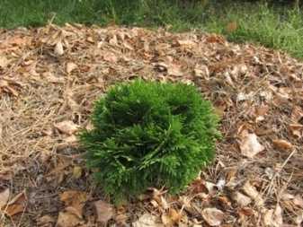 - В первую очередь утепляют (мульчируют) почву по периметру корневой системы. Для этого укладывают мульчирующий материал слоем от 5 до 20 см. Более точную толщину мульчи определяют исходя из погодных условий региона произрастания заокеанской красавицы. Лучший мульчирующий материал для туи — торф, перепревший навоз, солома, компост, земля из-под хвойных деревьев (хвойный опад), сухие листья, опилки.