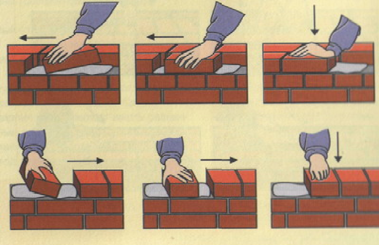 В зависимости от того, какой стороной кладется кирпич, существует три основных технологии кладки: