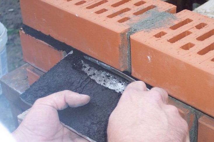 Технология нанесения раствора не отличается особой сложностью. Следует класть раствор таким образом, чтобы он не покрывал около полутора сантиметра кирпича по бокам. Давно используются в строительстве специальные формы, которые позволяют быстро нанести раствор в нужной геометрии.