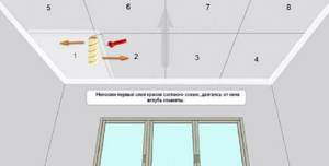 Как побелить потолок кистью или валиком? При нанесении первого слоя кистью или валиком они перпендикулярны направлению светового потока от окна, известь наносится широкими крестообразными движениями, начинается от окна и постепенно перемещается внутрь помещения.