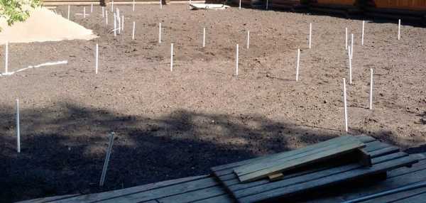 - В принципе, последним действием является само выравнивание – благодаря вбитым колышкам будет хорошо видно, сколько земли необходимо подсыпать и в каких местах