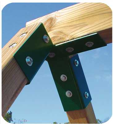 Для крепления отдельных элементов качелей используются анкерные болты и крепежная фурнитура для возведения кровли. О похожем монтаже мы рассказывали в обзоре про деревянные лестницы.