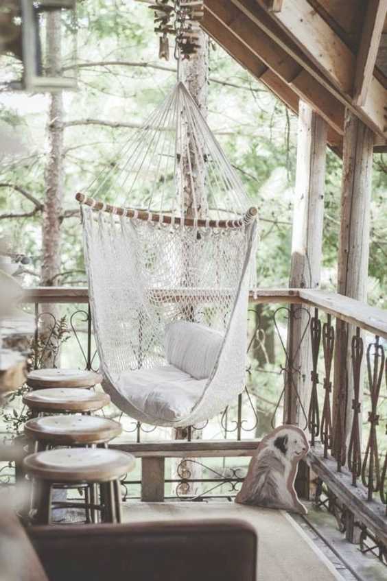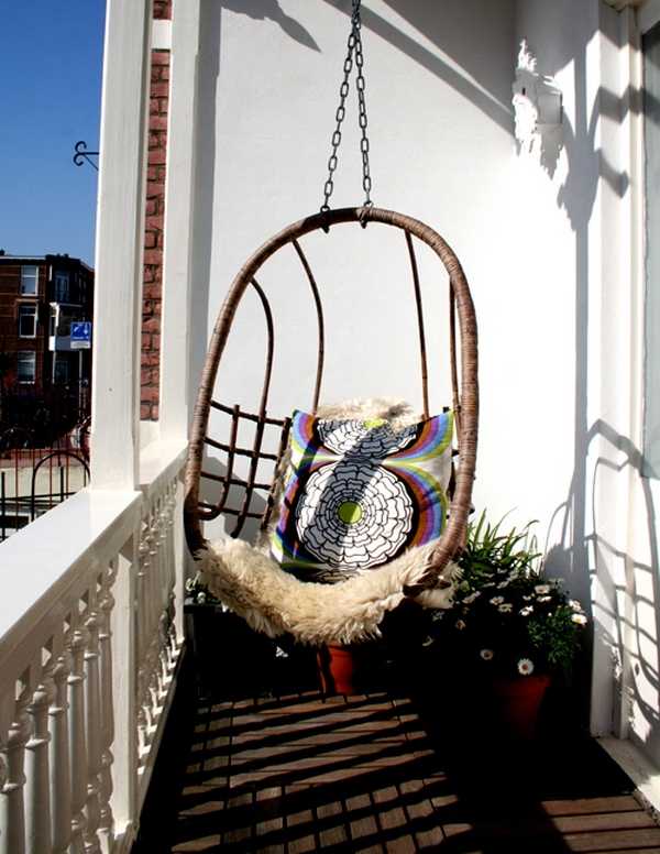 Текстильные кресла могут быть использованы и без навеса, для этих целей рекомендуем сделать крюк на анкерном болте, к которому они будут крепиться по мере необходимости. Для тих целей могут использоваться переносимые террасные качели, которые в хорошую погоду можно устанавливать под открытым небом без навеса. При достаточно надежной основе это может касаться и разных вариаций swing-bed.