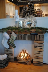 Для украшения рождественского очага используют различные игрушки и природные материалы, например: