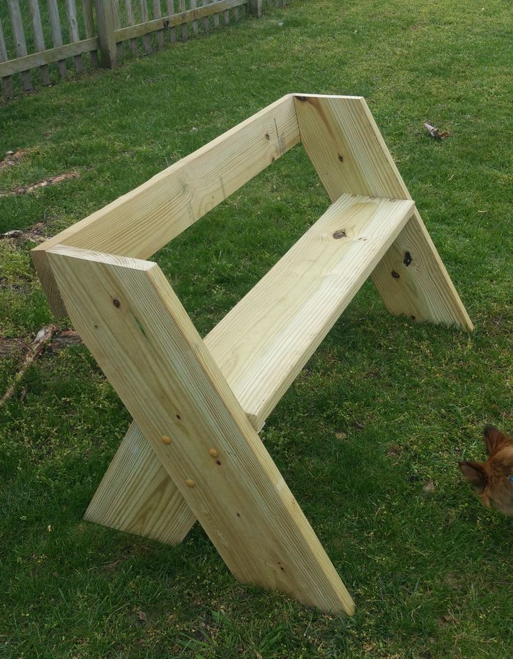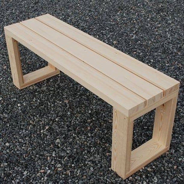 Деревянная лавка без спинки – самое простое решение. Допускается использовать доску толщиной до 75 мм.Из двух частей состоит каждый элемент.