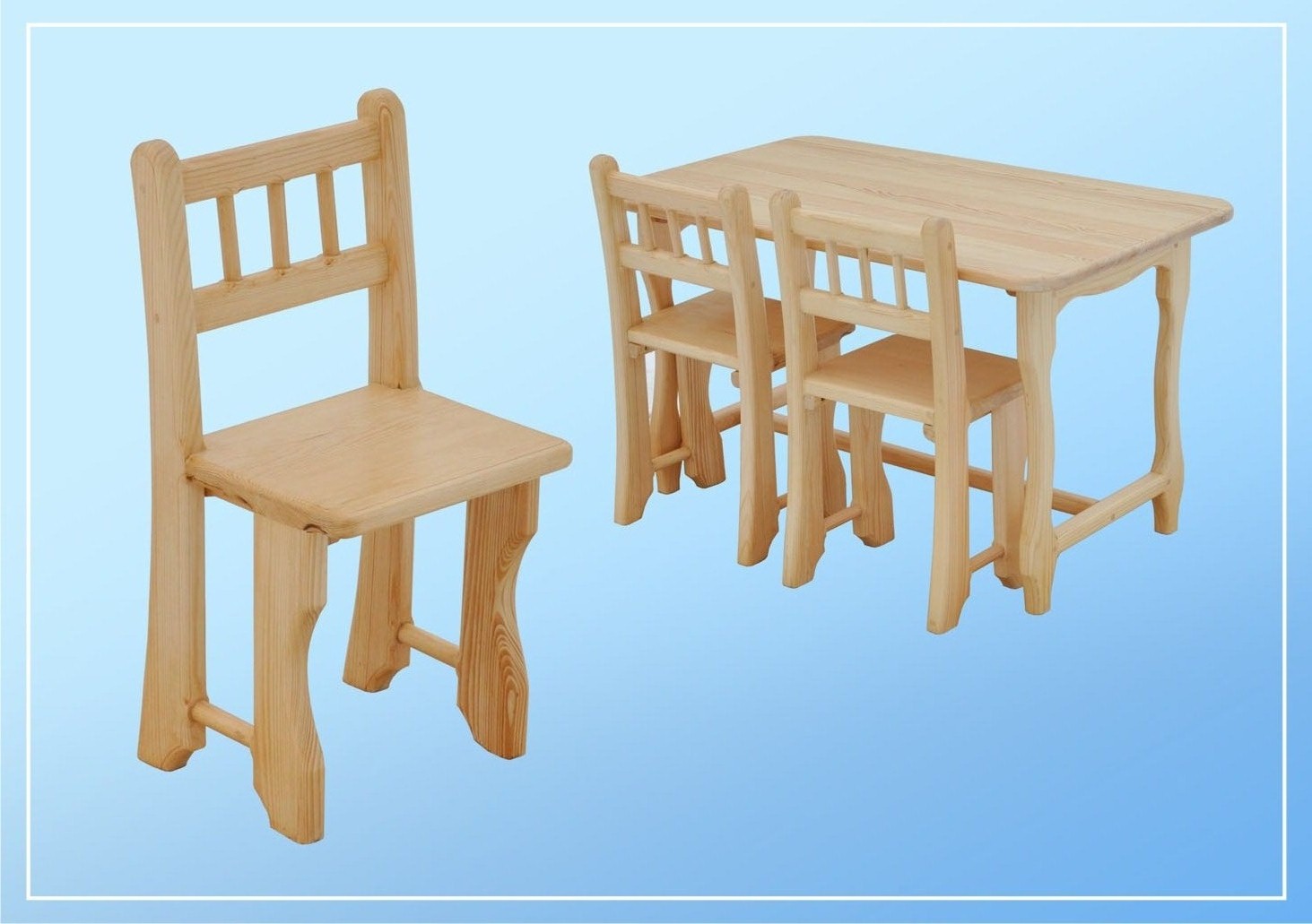 Стол и стульчик лучше делать из дерева бук. Он легок в обработке и не выделяет смолу.