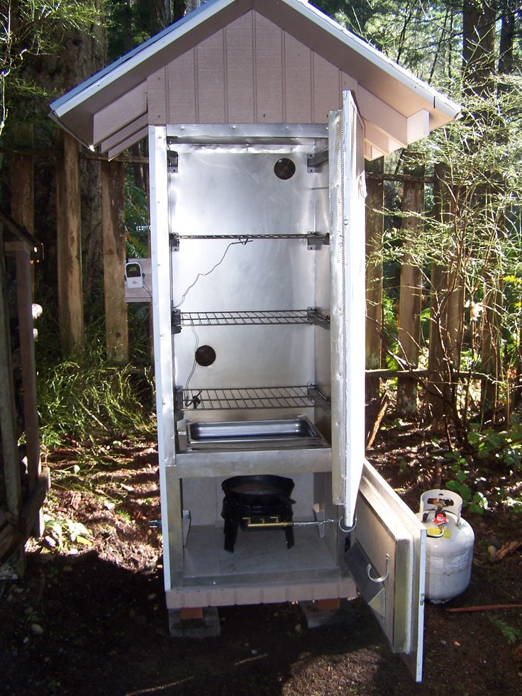 Постоянные коптильни могут быть сделаны из камня, бревен, бетона или деревянных элементов каркаса и должны быть достаточно большими, чтобы соответствовать потребностям средней семьи (обычно это структура 6 x 8 x 8 дюймов). В этих зданиях бетонный пол необходим для защиты дома от грызунов, а бетонные опоры устанавливаются ниже линии замерзания, чтобы обеспечить прочную и долговечную конструкцию.Костровище, находящееся за пределами здания, выводится через пол в коптильню.