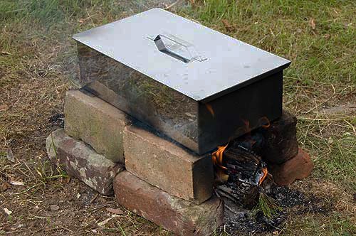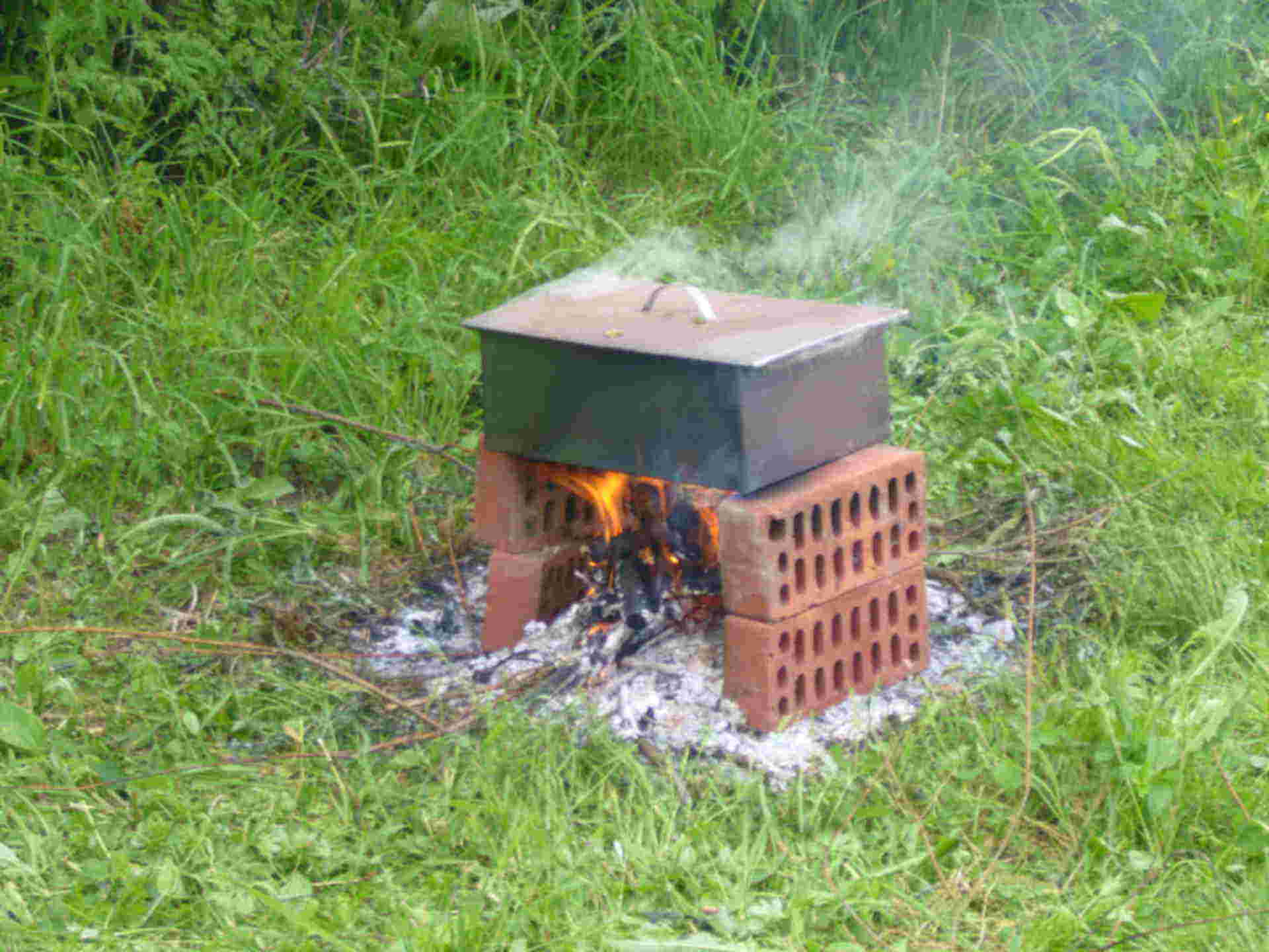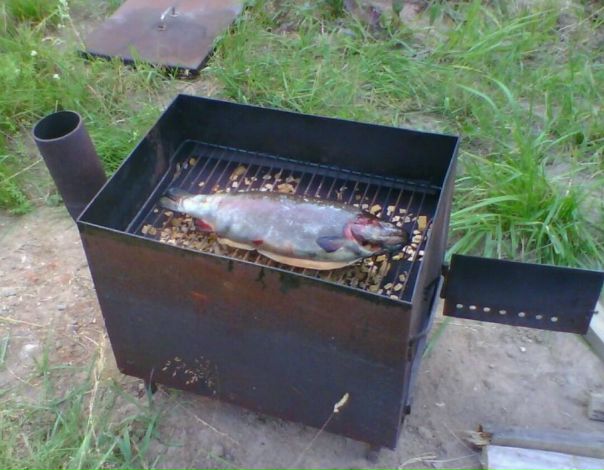 Теоретически соорудить коптильню можно из любых подручных бытовых вещей: старого сейфа, большой кастрюли, ведра или корпуса от мангала. Также имея несколько кусков фанеры и пару поленьев сухого дерева, можно оборудовать пробную коптильню буквально за пару часов.