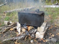 Процедура очень проста: под вытяжку подвешиваются продукты, под них ставится емкость для жира. Далее берется небольшое количество щепы в металлической посуде и помещается на огонь до появления дымка.
