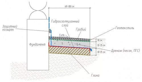Подстилающий слой выполняется из материалов, которые плохо впитывают влагу и этим блокируют доступ разрушительной влаги к основанию постройки. Применяют песок, геотекстиль, глину, щебень мелкой фракции. Можно комбинировать эти материалы для усиления эффекта.