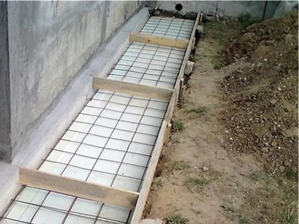 Для каркаса отмостки можно вместо стальной арматуры использовать арматуру из стеклопластика.