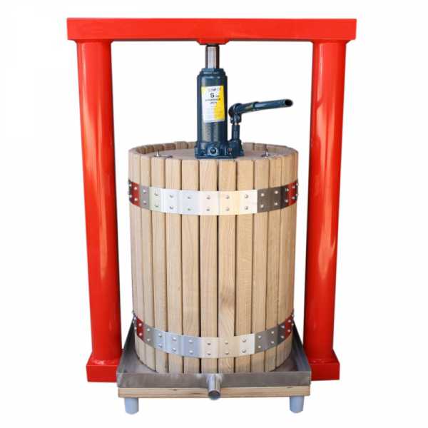 В деревянном прессе абсолютно все детали выполнены в натуральном материале, как правило, для изготовления берутся твердые сорта: яблоко, дуб, липа, бук или ясень. Такие давилки нуждаются в тщательном уходе и просушке после каждого применения. Связано это с тем, что в порах скапливаются бактерии, способные пагубно влиять на свежеприготовленный сок.