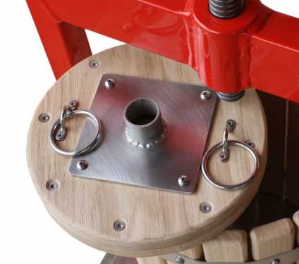 Принцип работы винтового пресса заключается в создании постоянного давления, регулируемого затяжкой винта с упорной резьбой. Давление такого механического пресса значительно выше рычажного, к тому же постоянная сила воздействия качественнее выгоняет сок из мезги.