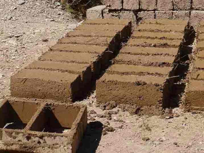 Чтобы ускорить сушку самана, полость готовых кирпичей в нескольких местах протыкают длинным металлическим прутом.