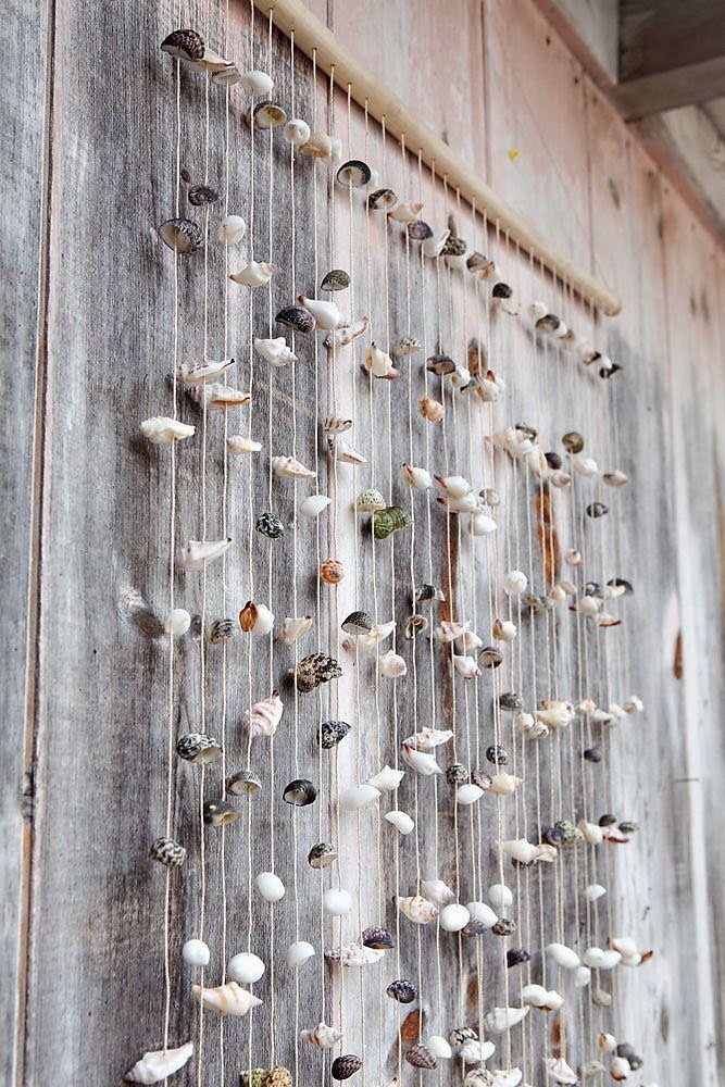 Можно купить бамбуковые палочки или разобрать готовые шторки и сложить узор по своему рисунку. Нанизывают на шнур, веревку, толстую леску плотно друг другу или на расстоянии. Во втором случае подыскивают основу с выраженной декоративностью.