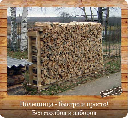 - Не нужно делать каркас. Полена в поленнице держаться за счет технологии их укладки.