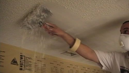 Снятие покрытия с потолка отличается большой трудоемкостью и определенной сложностью, ведь работать приходится с постоянно поднятыми вверх руками. Количество осыпающихся загрязнений и густые облака мелкодисперсной пыли способны поразить воображение начинающих мастеров.
