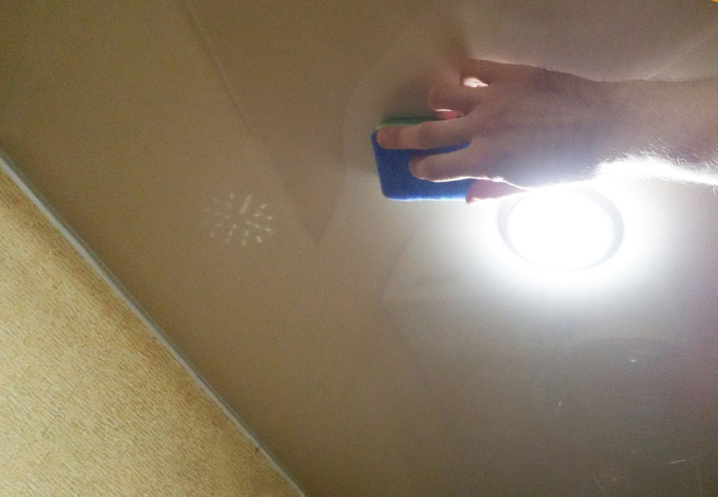 - После проведения работ потолок стоит тщательно помыть теплой водой.