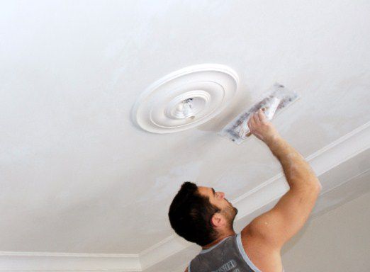 При необходимости простого освежения можно также оставить на месте покрытие и побелить его приблизительно таким же составом, какой использовался ранее. Определить, был это мел или известь, помогает очень простая проверка: потолок сбрызгивается водой, и, если капли впитываются, то побелка меловая, если нет – известковая.