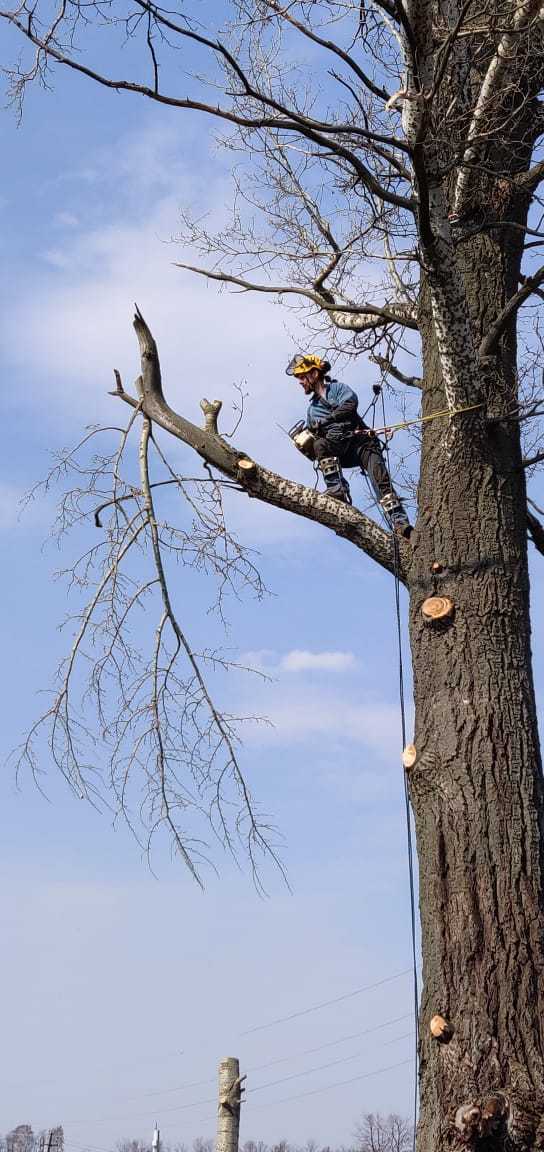 - Все ветви дерева срезаются от основания к вершине. Как только необходимые системы установлены на дереве и на земле, можно начать работы по демонтажу дерева. Нижние ветви всегда срезаются первыми. Затем арборист передвигается выше, к следующим веткам. Такой метод позволяет всем веткам достигать земли без каких-либо препятствий.