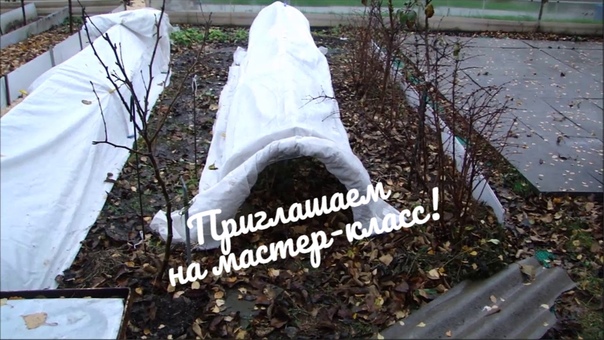 Перед самыми морозами кусты обкладывают еловым лапником, а сверху накрывают агроволокном.
