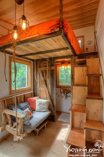 Совсем крошечное пространство тоже может быть удобным. При разделении личной зоны и общественной вам помогут ширмы, занавески и открытые стеллажи. В маленькой даче есть и преимущества — у каждой вещи свое место, легко наводить порядок и, при желании, можно создать неповторимую сказку с оригинальными деталями.