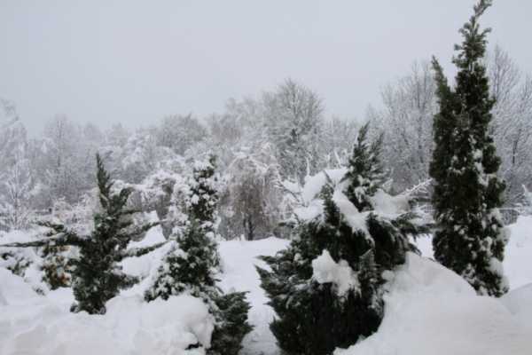 - После снегопада укрытый молодняк очищается от груза, с взрослых деревьев также рекомендуется стряхивать снежный покров.