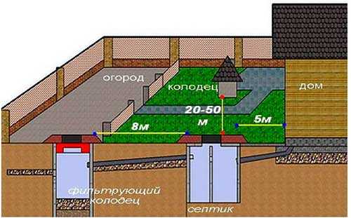 - Место для колодца должно быть чистым, то есть находиться более чем в 20 — 50 метрах от проезжей части, септика и разного рода сельхоз — построек, таких как курятники, свинарники, выгребные ямы и т.д.