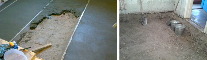 - заливка бетона, выравнивание и стяжка бетонного пола.