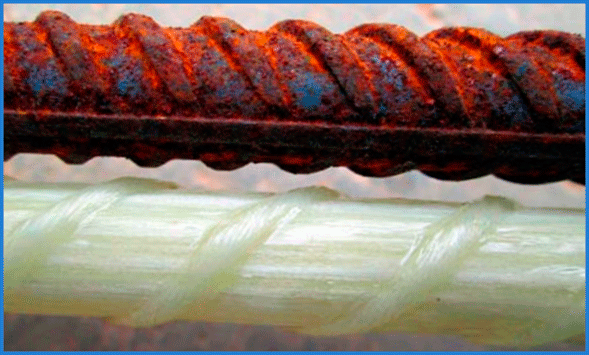 Армирующий материал из стеклопластика представляет собой конструкцию из продольных стекловолоконных нитей, покрытых слоем полимерной смолы, которая наносится напылением или по методу направленной навивки. Такая технология позволяет изготавливать арматуру по прочности превосходящую сталь.