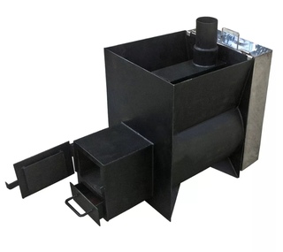 По конструкции печь для бани из металла может быть закрытого или открытого типа. Закрытая печь состоит из корпуса, разделенного на три отсека: топку с поддувалом, каменку с отверстием для пара и бак для воды. Открытая подразумевает укладку топлива непосредственно на решетку, расположенную над топкой.