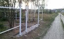- Вначале в грунте готовят ямы глубиной от 80 см и бетонируют в них металлические трубы;