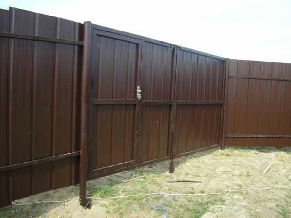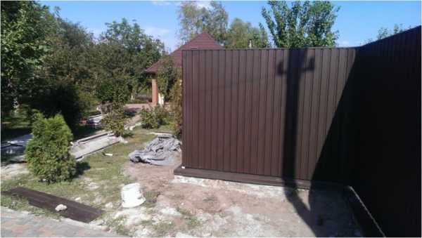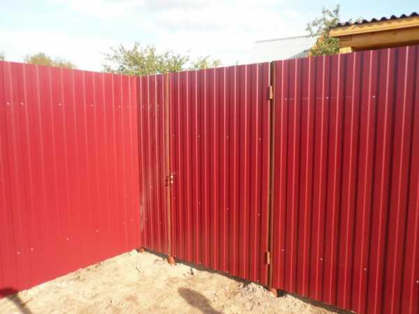 Листы профнастила крепят так же, как и на ограждении. Далее готовые конструкции устанавливают на вертикальные опоры. При правильно подготовленной основе забор из профнастила станет надежной защитой вашего участка и прослужит не один десяток лет.