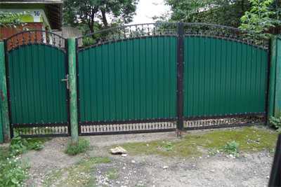 Для изготовления ворот и калитки из профнастила необходимо определиться с их конструкцией. Если позволяет место, калитку можно сделать отдельно, в противном случае ее можно предусмотреть в створке ворот.