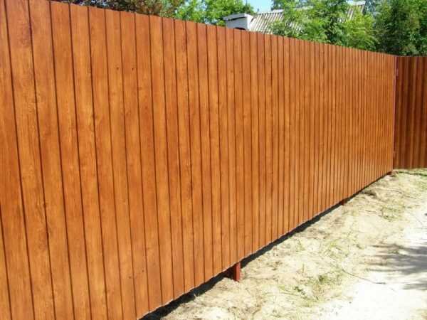 Металлические столбыВ общих чертах: надо установить столбы для забора — стальные, бетонные или кирпичные — по всему периметру будущей ограды с шагом около 2 метров, а между ними закрепить листы металла. К тому же профлист выпускается во множестве цветовых и фактурных модификаций, и подобрать подходящую по стилю можно без труда. Под заказ полотна окрашиваются с имитацией древесины и камня.