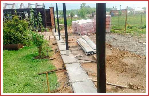 Каркас для забора из металлопрофиля установлен на ленточный фундамент