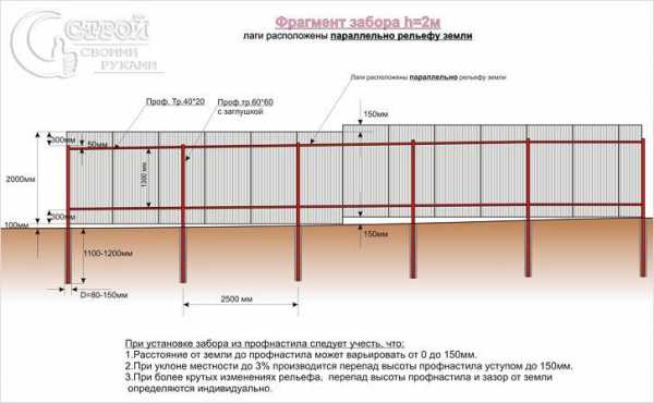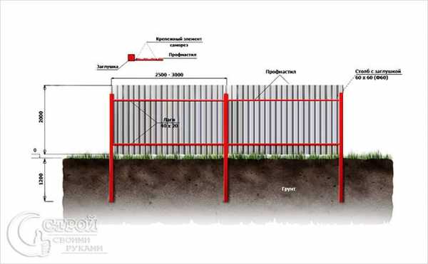 Забор из профнастила — как делать прогоны для крепления профлиста