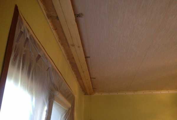 Вы можете также на подвесах зафиксировать по длине карниза брус или кусочки фанеры. Это даст дополнительную гарантию того, что карниз не упадет вместе с потолком.