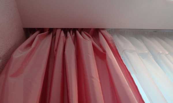 Никто не сможет увидеть такое крепление, поскольку видна будет только портьера. Вы можете посмотреть на фото карнизы для штор, которые спрятаны под натяжным потолком: