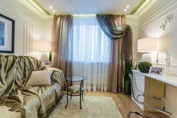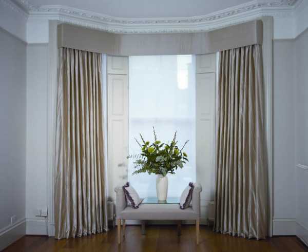 Потолочные карнизы станут незаменимыми при оформлении эркеров. Тип ткани задаст общую нотку интерьеру.