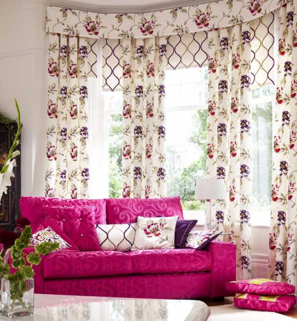 Подбирая ткань, которая будет закрепляться на потолочные карнизы, изначально необходимо исходить из отделки стен. Однотонные обои или окраску эффектно подчеркнут шторы с рисунком, необычными принтами, яркими элементами декора.