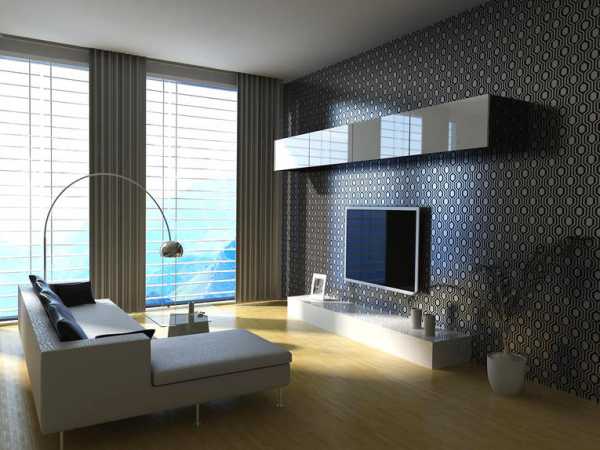 Просторный зал, отличающийся высокими потолками и оформленный в стиле минимализма, эффектно украсят занавески, пошитые из ткани с достаточно крупным рисунком. Если же вы являетесь почитателями классики, то такие портьеры можно будет дополнить бахромой, подвязками.
