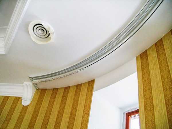 Никто не сможет увидеть такое крепление, поскольку видна будет только портьера. Вы можете посмотреть на фото карнизы для штор, которые спрятаны под натяжным потолком: