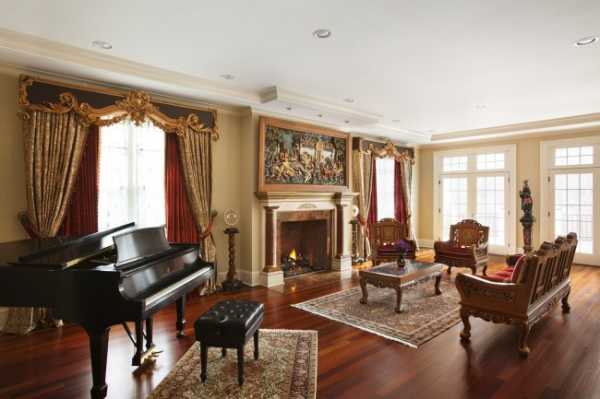 Комнаты, оформленные в классическом направлении тоже потребуют от вас соответствия стилю. В таком случае понадобятся карнизы из натурального дерева, с оригинальными узорами, выполненными позолотой. Шторы сюда тоже следует брать бархатные с позолотой.