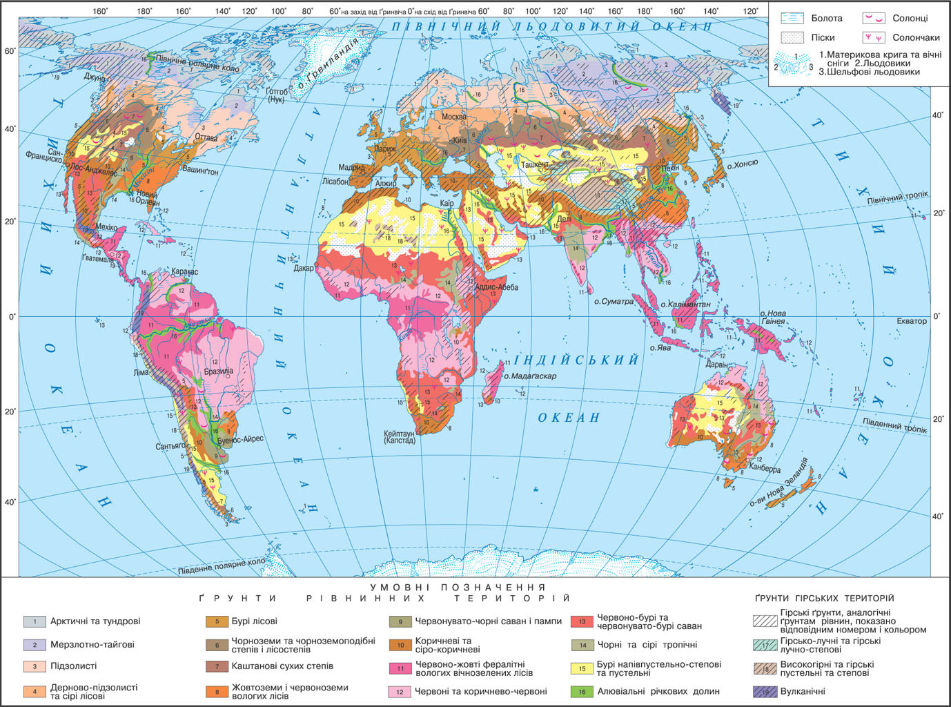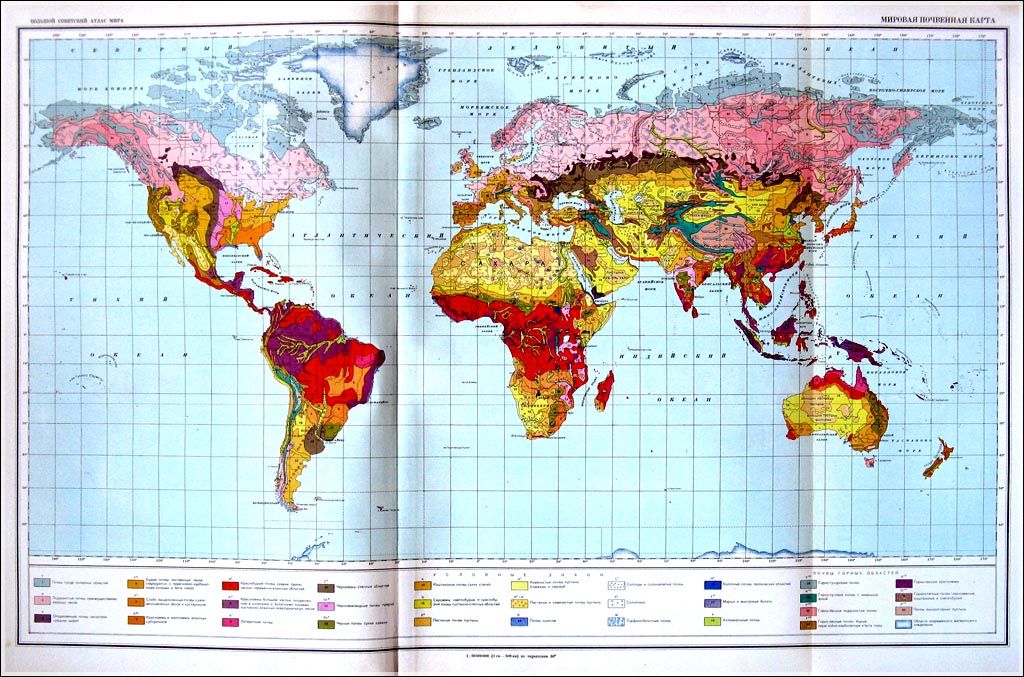 Данная карта является развитием предыдущей карты, однако, засчет меньшего масштаба обладает и меньшей детальностью. Первая редакция этой карты была простой генерализацией карты FAO/UNESCO масштаба 1:5’000’000.