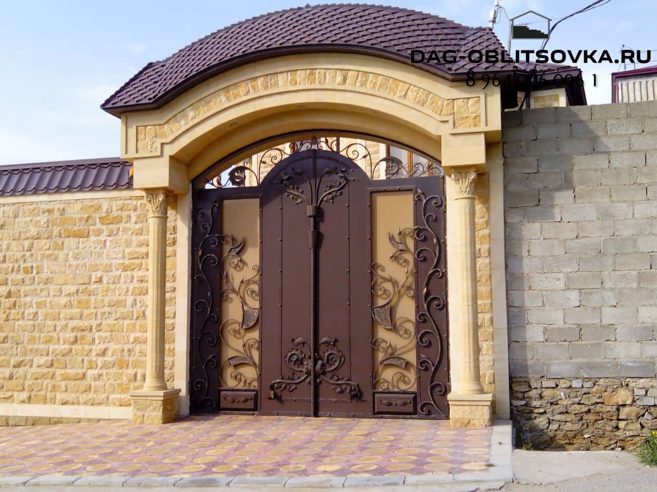 … К красивым и нестандартным арочным воротам со старинным чугунным решетчатым окном.