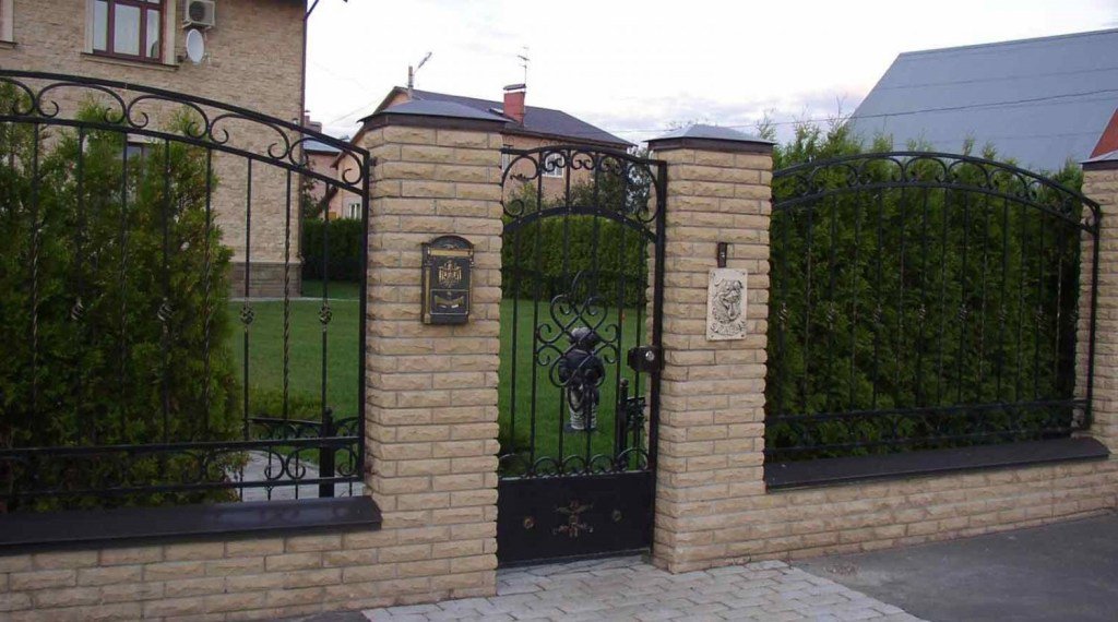 Кирпичные опоры гармонично сочетаются с другими материалами — от дерева и профнастила до металлической ковки. Порой столбы устанавливаются с целью создания надежной подпорки для ворот. Основные задачи такой конструкции — эстетическая привлекательность и опора. Сооружение при этом будет долговечным, прочным и надежными.